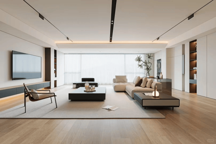 LDKB的一体化布局,串联起客厅、餐客、厨房、阳台四个空间,缩小过道占用,整体提升空间利用率与室内的通透度。同时,L型厨房连接岛台布局,营造出舒适、开放的空间,进而提升业主居家生活的沟通和舒适度,极大营造改善居住大家的高级感、层次感。