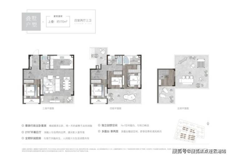 上叠170平户型:四室两厅两卫,总价330-350万