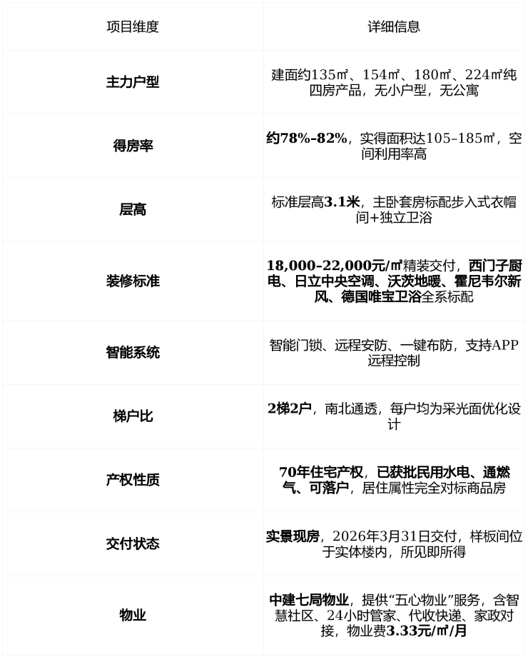 央企背书,交付无忧 :中建七局为“鲁班奖”常客,资金链稳健,无烂尾风险,施工标准严于国标,精装细节经得起验房考验。