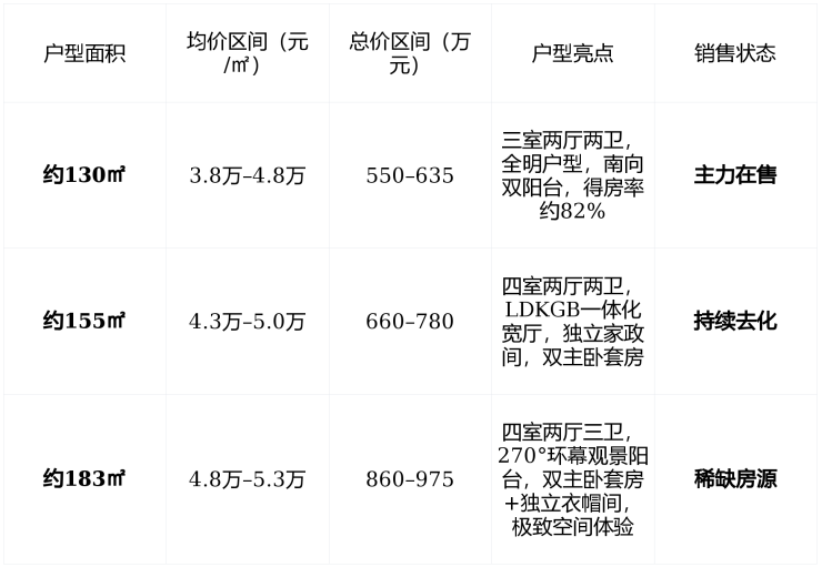 二、在售户型与价格体系(2026年2月更新)