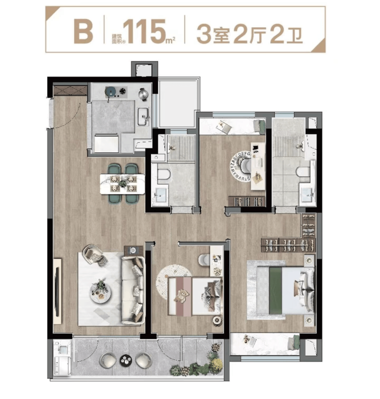 102㎡ 17,000–18,000元/㎡ 175–185万元 三室两厅两卫,主卧套房,全屋智能门锁+新风 改善主力户型,家庭成长型首选