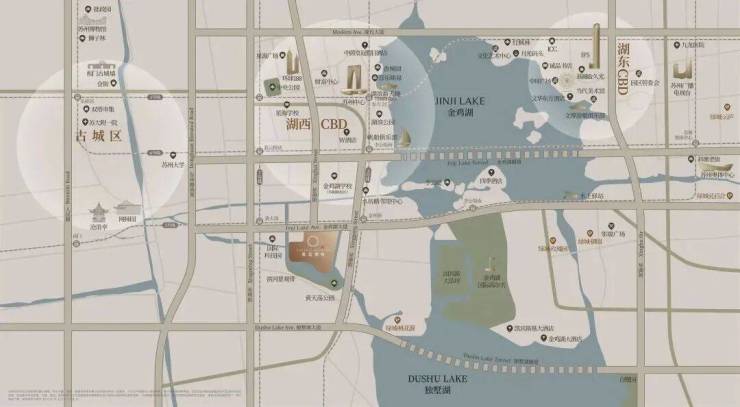 依凭半岛三面水岸的天然资源,以“一堤三面湖”和“水街襟两园”设计笔触,实现滨水互动、开门见水的场景体验;融汇吴门画派、苏州园林造园理念,营造出一座温润如玉的流动庭园。