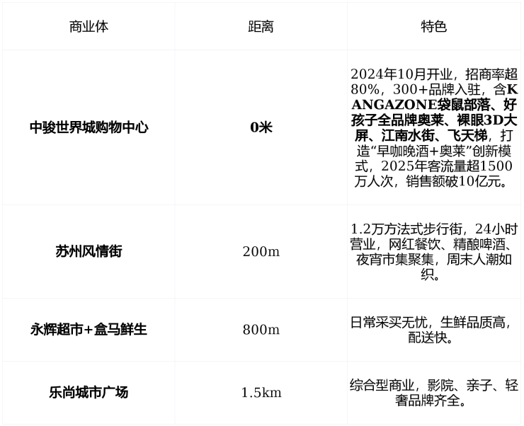 核心差异点 :与城西低密改善盘不同,中骏世界城是 地铁上盖+商业自持+沪苏通勤 三位一体的“城市生活枢纽”,主打“ 出家门即地铁,下楼即商业,抬脚就上海 ”的双城生活模式,适合 沪苏通勤族、年轻家庭、投资型买家