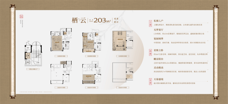 项目预计2025年10月交付(准现房状态),首推合院和叠加产品,其中合院仅有一种约 370㎡的户型,叠加产品分为上叠203㎡和下叠280㎡两种。洋房产品预计后期推出
