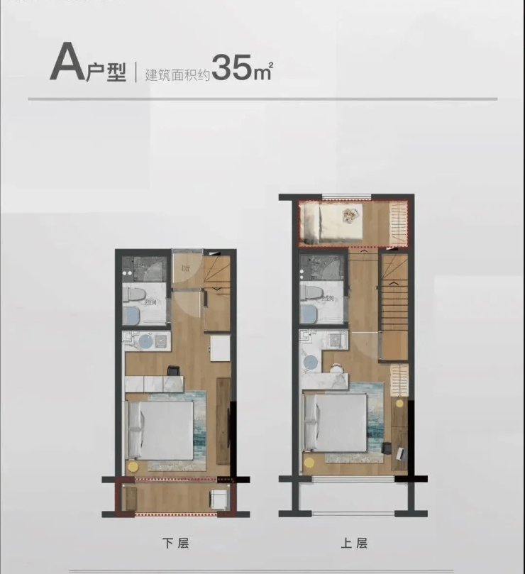主力户型为35–76㎡的双钥匙LOFT,上下两层独立入户,可实现“一套房、两套房用”,适合年轻创业者、投资客、过渡型家庭。层高4.79米,可灵活改造为工作室+居住、主卧+客房等复合空间,得房率高,租金回报潜力强 。