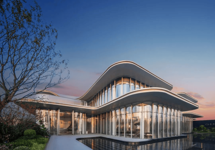 设计理念:外立面以太湖和奥体中心为灵感,采用扎哈·哈迪德标志性曲线,搭配全面屏玻璃窗,呈现流动的视觉效果