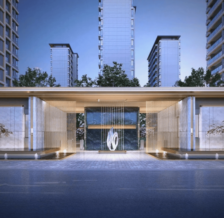 建筑风格:现代风格外立面,采用铝板+玻璃幕墙组合,南向面宽超14米,强调南北通透与景观视野
