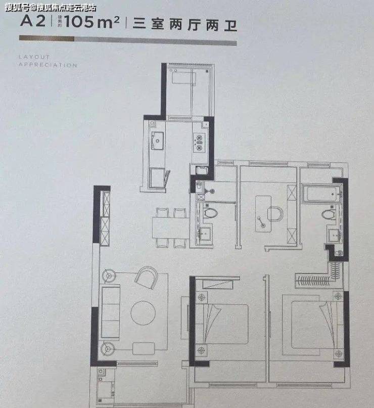 三开间朝南,主卧套房设计,适合预算有限的三口之家。
