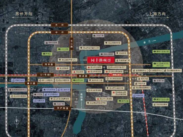 主干道网络 :同丰路、前进路、震川路三横三纵,快速接入中环快速路,自驾30分钟直达苏州园区、上海嘉定。