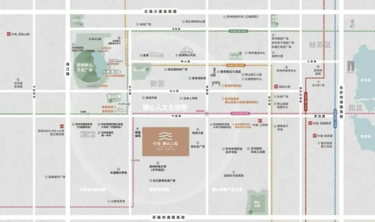 文化设施:苏州博物馆西馆、狮山大剧院、苏州科技馆等市级文化场馆环绕
