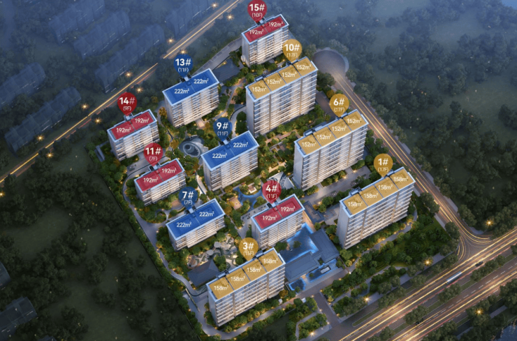 项目定位:纯改善型精装社区,主打建面约152-222㎡的四房大平层,得房率约78%-80%,总户数仅384户,容积率低至1.8,绿化率35%,打造低密、静谧、高圈层的居住体验 。