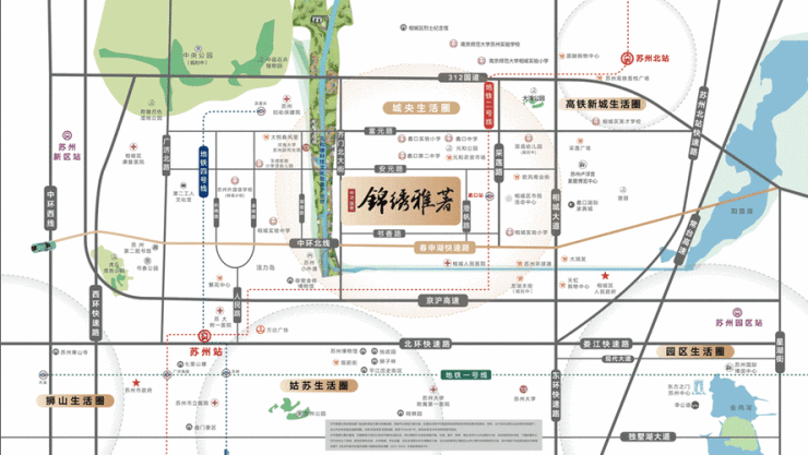 高铁枢纽:距离苏州北站约23分钟车程,可快速融入长三角交通网络,直达上海虹桥