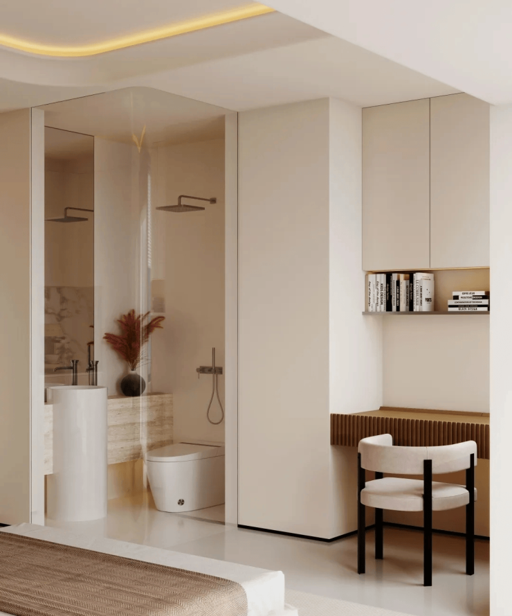 “立体化”空间哲学:6米层高配合全景落地窗,确保双层采光通风,上层可作为卧室或独立办公区,实现“一房变两房”的魔术级扩容。