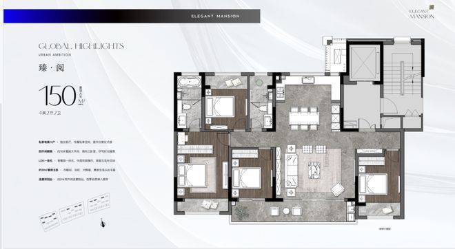 4房型设计,可以满足三代人居住,高得房率+高赠送面积。