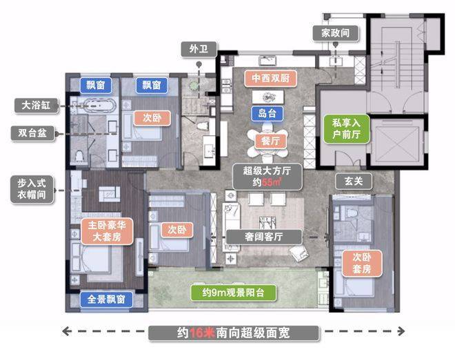 【户型亮点】私家电梯入户+独立入户玄关,私密性强。