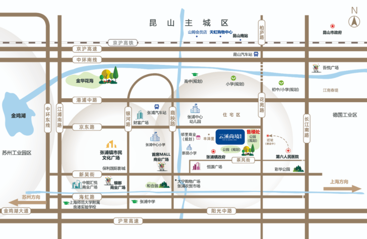 自驾:临近长江路、机场路等主干道,15分钟直达昆山南站,30分钟通达苏州湖东CBD