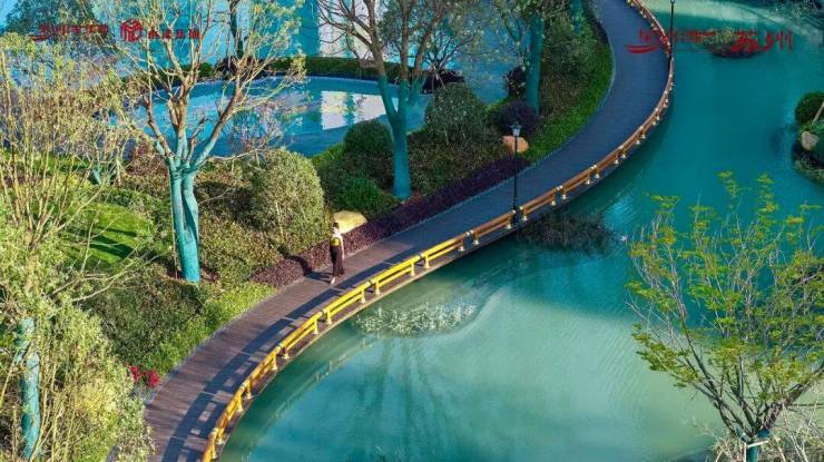 中央水系园林设计:约2/3土地面积设计为水系园林,中央水景近8000㎡,四维景观体系,融合水景、奇石、名贵花木,以现代手法转译"小桥流水人家"的姑苏画境。