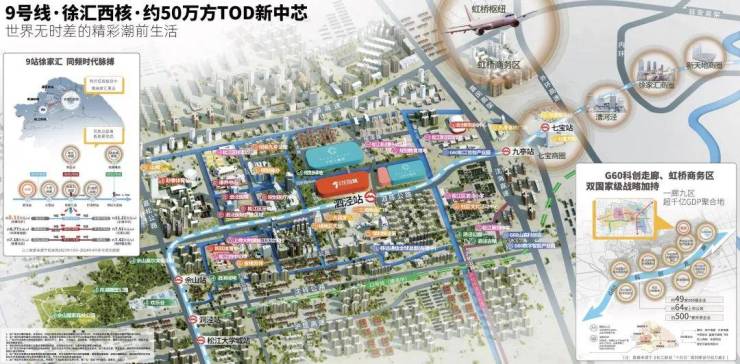 地铁9号线6站即达徐汇,G50沪渝高速、泗陈公路、沈砖公路、G60沪昆高速等立体交通,与城芯无缝连接;