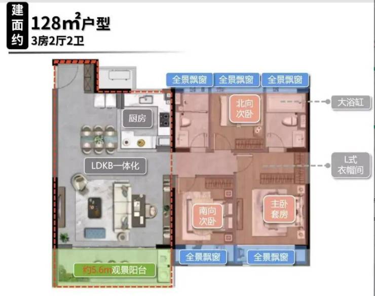 128㎡三房两卫:总价约339万,单价约2.65万元/㎡