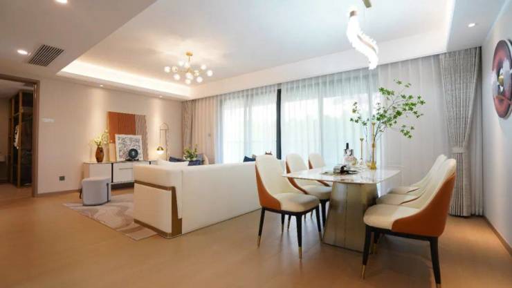 约125㎡洋房,媲美大平层的约7m餐客一体设计,衔接同宽阳台,通透的格局延伸,带来极为开阔的视野享受。