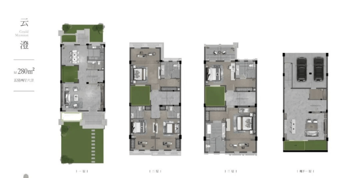 绿城·云溪里共有154户法式排屋,面积段为183-352㎡,每一户都是稀缺的院墅,满足了高端人群对品质生活的追求。面积从255方到355方不等,花园面积40-140方,阁楼面积40-60方,每一户都有自己独特的空间布局。