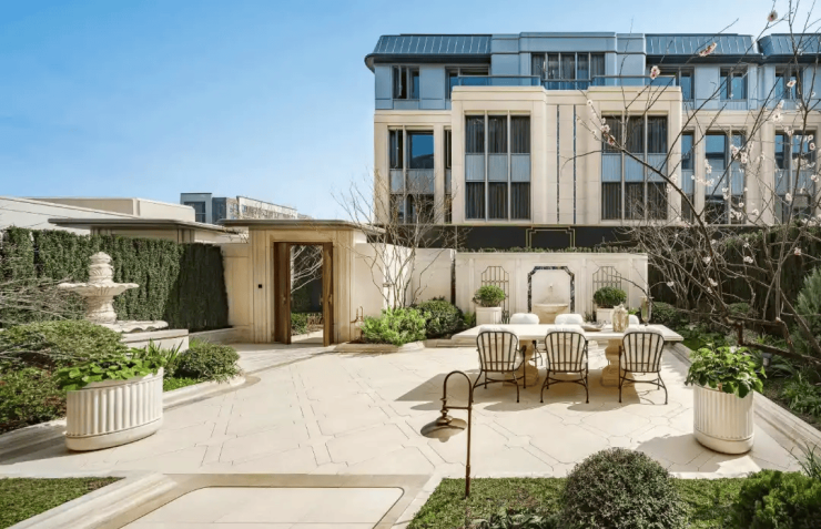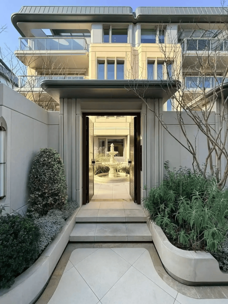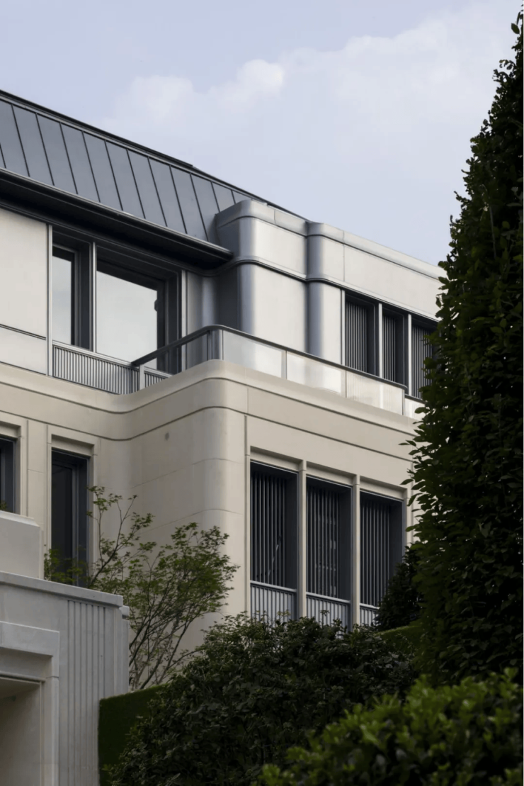 项目汲取西湖北山街民国建筑灵感,采用类孟莎式坡顶、进口莱姆石与大面积玻璃立面,融合法式对称与东方禅意,打造“摩登海派”风格 。