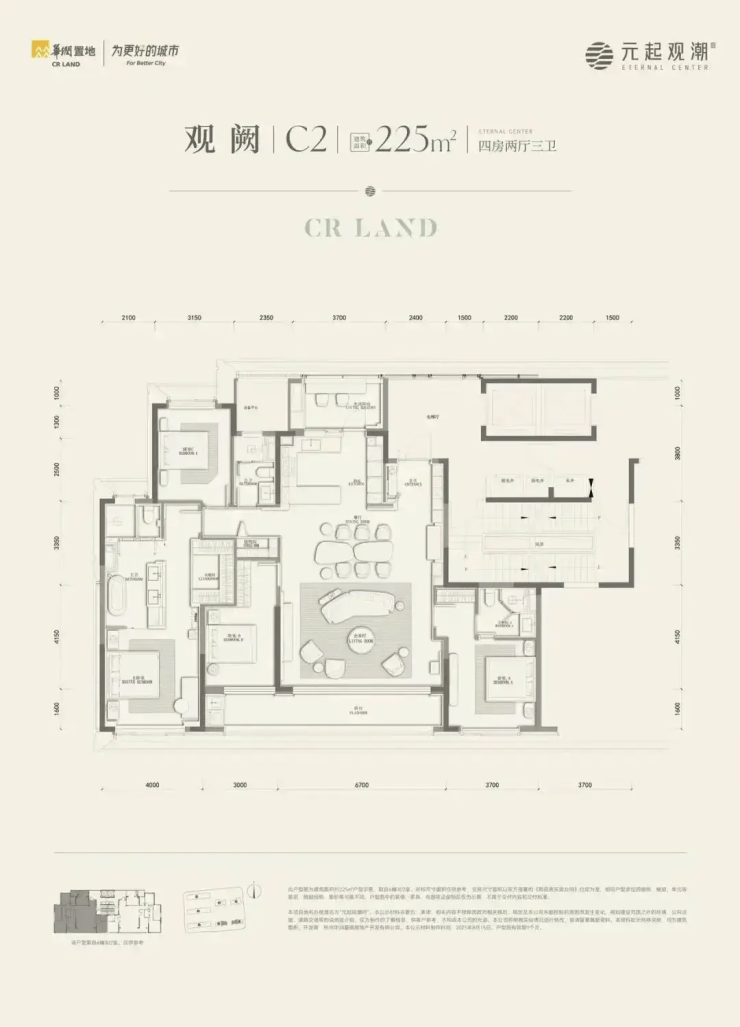 225㎡ 1,391万–1,392万元 4室2厅3卫,双阳台 85%+ 主卧270°环幕采光,全屋华为智控