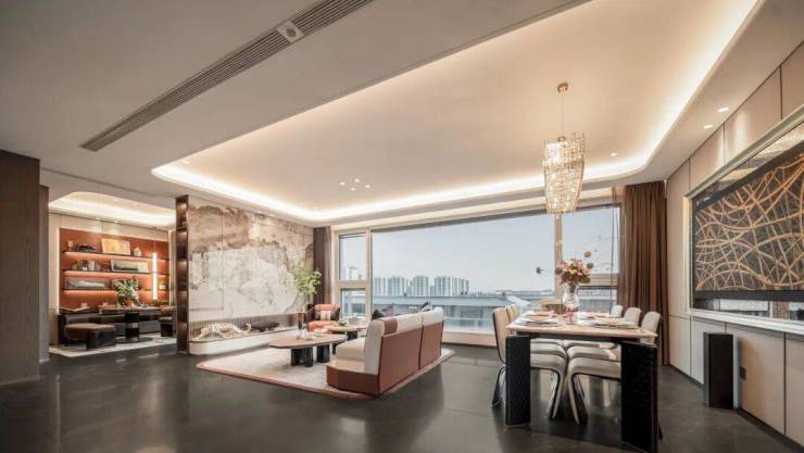 精装方面也全部都是甄选国际一线品牌,比如日本大金中央空调、德国威能地暖、法国兰舍新风三大件,SMEG、德国铂浪高品牌厨电,瑞士劳芬、德国高仪等品牌卫浴......