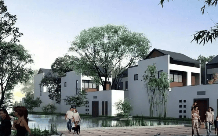 建筑风格 :现代中式徽派风格,融合江南水乡元素,部分房源为邻水双拼别墅,配备露台、车库等设施