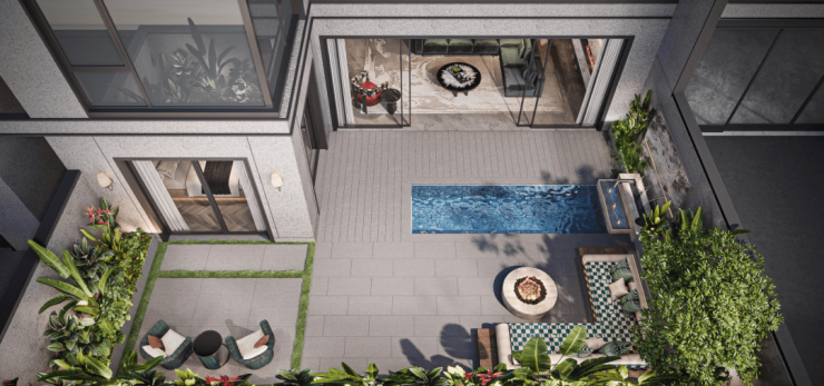 合院209-241㎡三面围合院落地上3层+地下2层560-720万独门独院+下沉式庭院