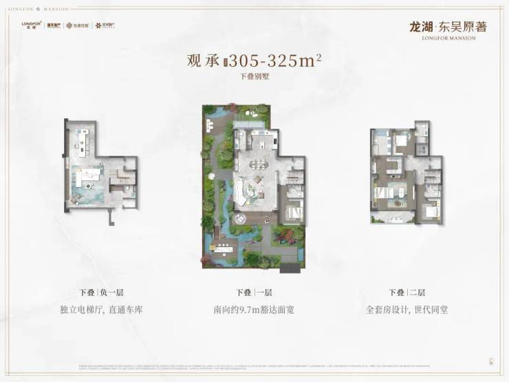叠墅:建筑面积205-325㎡,下叠带地下室设计,总价441-720万元