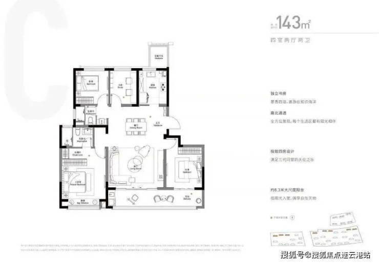 约130㎡户型,以约12.1m南向三面宽,邀阳光清风常驻;主卧化身酒店式尊崇套房,独立全明卫浴辉映品质;约13.6㎡南向观景阳台,将风景延展成日常。