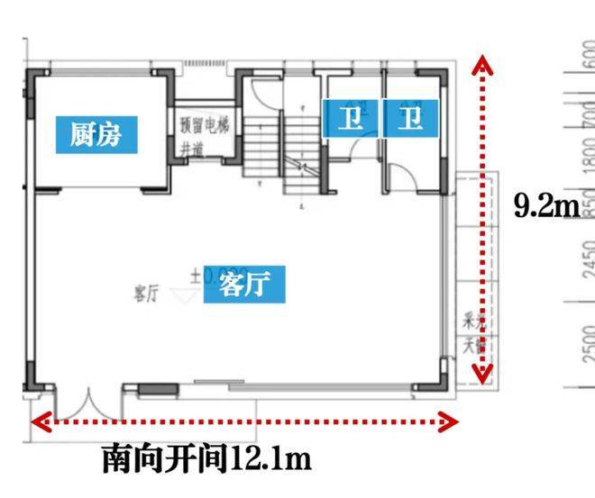 四开间朝南,南向面宽16.9米