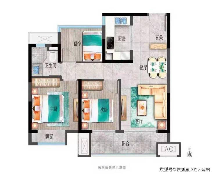 85㎡户型3室2厅1卫
