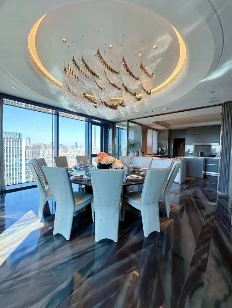 579㎡五房四厅三梯一户,南向面宽达37.3米客厅进深近17米配备三套房设计可设父母房、儿童房、书房/客房270°城市天幕景观