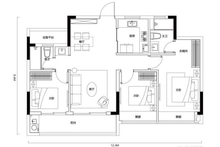 天阳·湖与舍打造的户型涵盖建面约100㎡、105㎡、128㎡这三个面积段。项目起步户型约100方,这一设计充分展现了项目自带的改善特质。其中,建面约100㎡的户型堪称明星户型。该户型面宽超过12米,四开间均朝南布局,客厅以及三个卧室全部朝南。而且,客卧采用双联阳台与双飘窗设计,采光条件极为优越,在同面积段的户型中,鲜少有能达到如此尺度与格局的。对于那些有边套情结的购房者而言,建面约105㎡的户型是不错的选择。此户型拥有约270度的采光面,室内采光通透度极佳,并且各个功能空间布局合理,还配备大飘窗,居住体验感良好 。