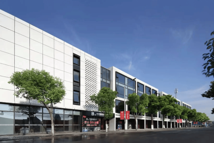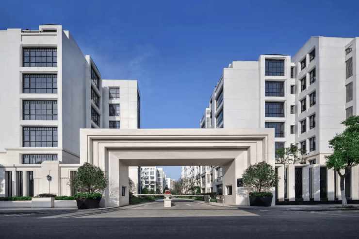 项目一期已建成,实景呈现法式纯白建筑与铝板外立面,品质可见。