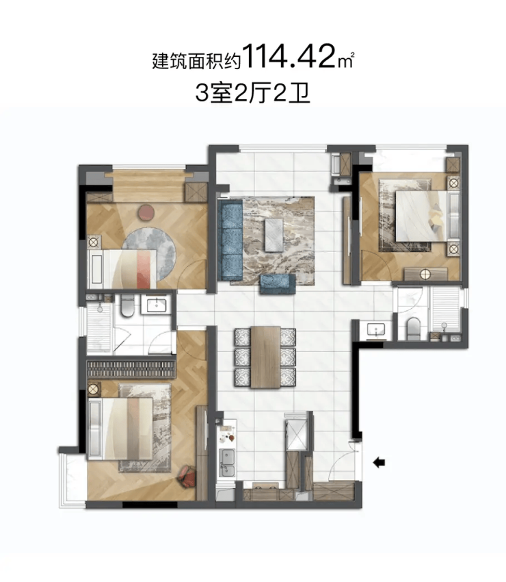 约114.42㎡ 3室2厅2卫,总价约650万元