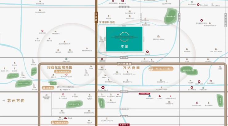自驾路网 :紧邻长江路中轴、中环快速路、城北大道、前进中路,自驾出行便捷,快速通达昆山各区域