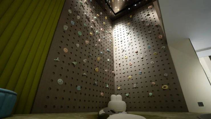 真正的奢华,绝非物质的简单堆砌,而是让空间的每一寸都能为生活的富足与精神的自由提供支撑。在绿城明月滨河,空间有着独特的叙事维度,多一层空间,便多一种生活的可能。下层会客厅充满社交活力,亲朋好友相聚于此,欢声笑语不断;而上层休憩空间则静谧私密,是人们放松身心的理想之地。动静分区的巧妙设计,让这两个区域互不干扰,却又紧密相连。而且,随着家庭结构的演变,空间具备灵活改造的特性。它可以是充满欢乐的亲子乐园,让孩子们尽情玩耍;也能成为安静的居家办公区,满足工作需求;还能打造成温馨的长者颐养空间,给予老人舒适的生活环境。空间形态能与时光一同进化,始终贴合家庭的需求。在这里,夹层被赋予了丰富的功能。它可以是健身房,人们在此自由律动,挥洒汗水;也可以是阅读区,让人沉浸在静谧的沉思之中;还可以是家庭影院,充满欢笑与共鸣。透光井引入自然天光,让攀岩墙与乐高王国在光影的交织下焕发出勃勃生机。△朗月滨河/明月滨河实景图
