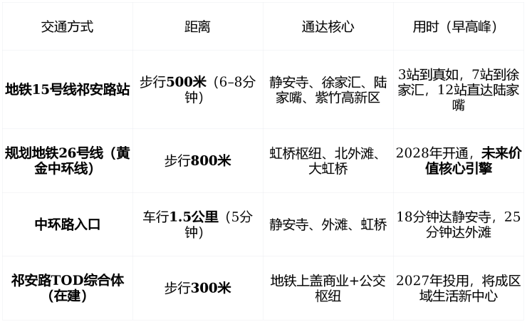 从项目出发, 步行7分钟到15号线,5分钟开车上中环 ,早高峰通勤效率优于普陀区92%新盘。