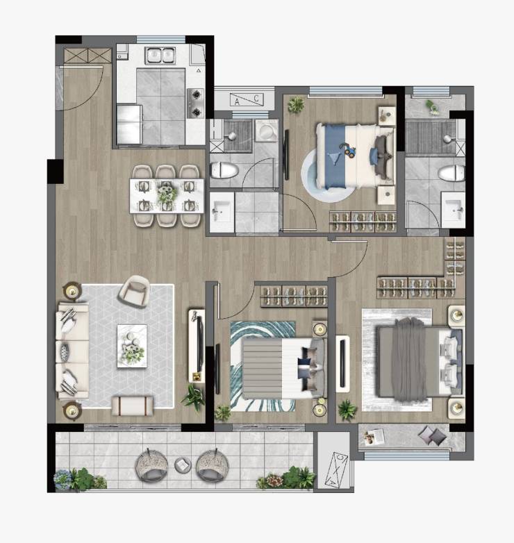 户型多样:92-114㎡的3居户型,满足不同家庭需求,得房率约80%