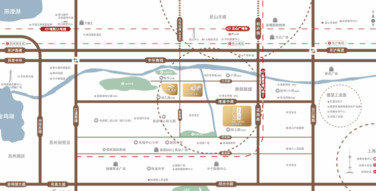 凯旋名筑地处昆山南部新城核心,交通网络发达,未来出行便捷: