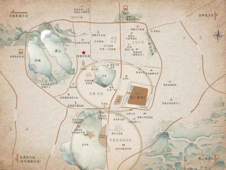 常熟三环内土地面积仅占全市约6%,随着文化片区、琴湖片区发展相继饱和,主城的发展重心开始全面向南转移。