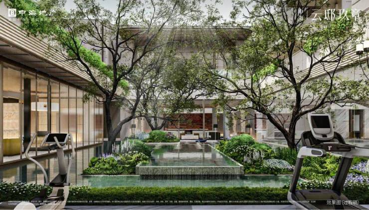 项目南区配备了一个高端会所,内含健身房,沙龙会客厅,私宴厅、恒温泳池等。恒温泳池紧邻下沉庭院,大面积落地窗设计打通了室内外的视野,中间无立柱遮挡,为家庭带来了度假式的亲子畅游体验。
