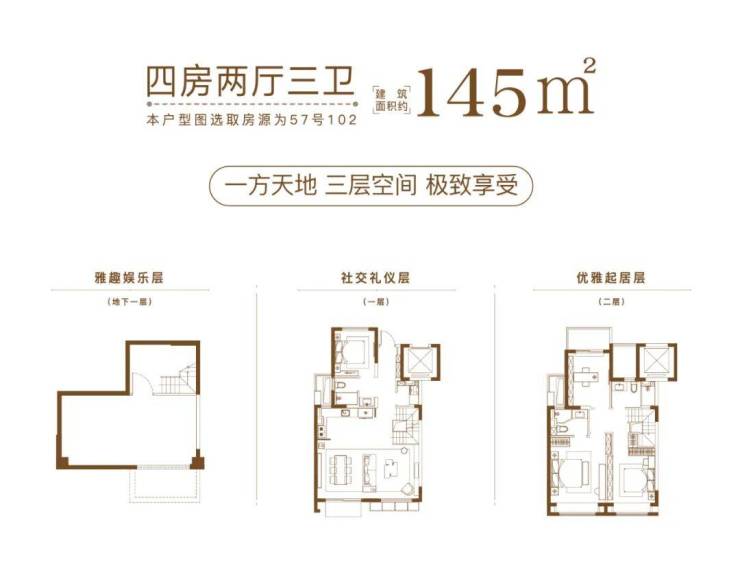 建筑面积约91-144㎡ 低密叠墅(复式住宅),则为改善置业者提供了新的选择。庭前一方天地、巨幕宽厅、星空露台、地下空间,称得上是城市墅居的理想范本!