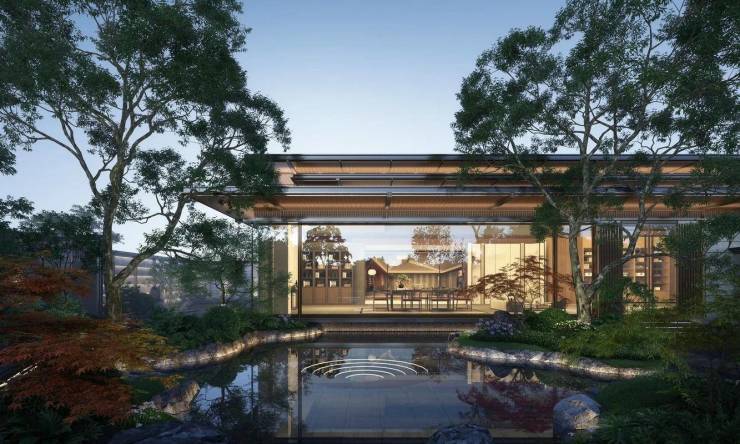 复刻苏州留园造景手法,打造"三进归家礼序"园林体系: