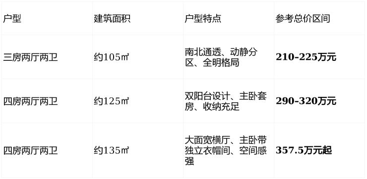 🏠 在售户型与价格(2026年1月最新)