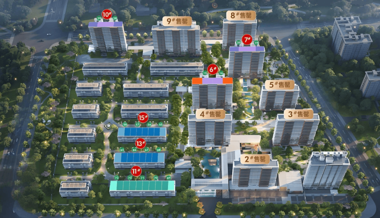 共享一期高端会所,涵盖健身、泳池、瑜伽等功能,社区内打造“5mins邻里环”生活圈,强调便捷与交互感。