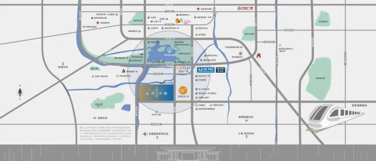 【商场】吾悦广场、旺西生活广场、曼巴特购物中心、步行街、老街商圈、暨阳湖金融街、麦德龙等
